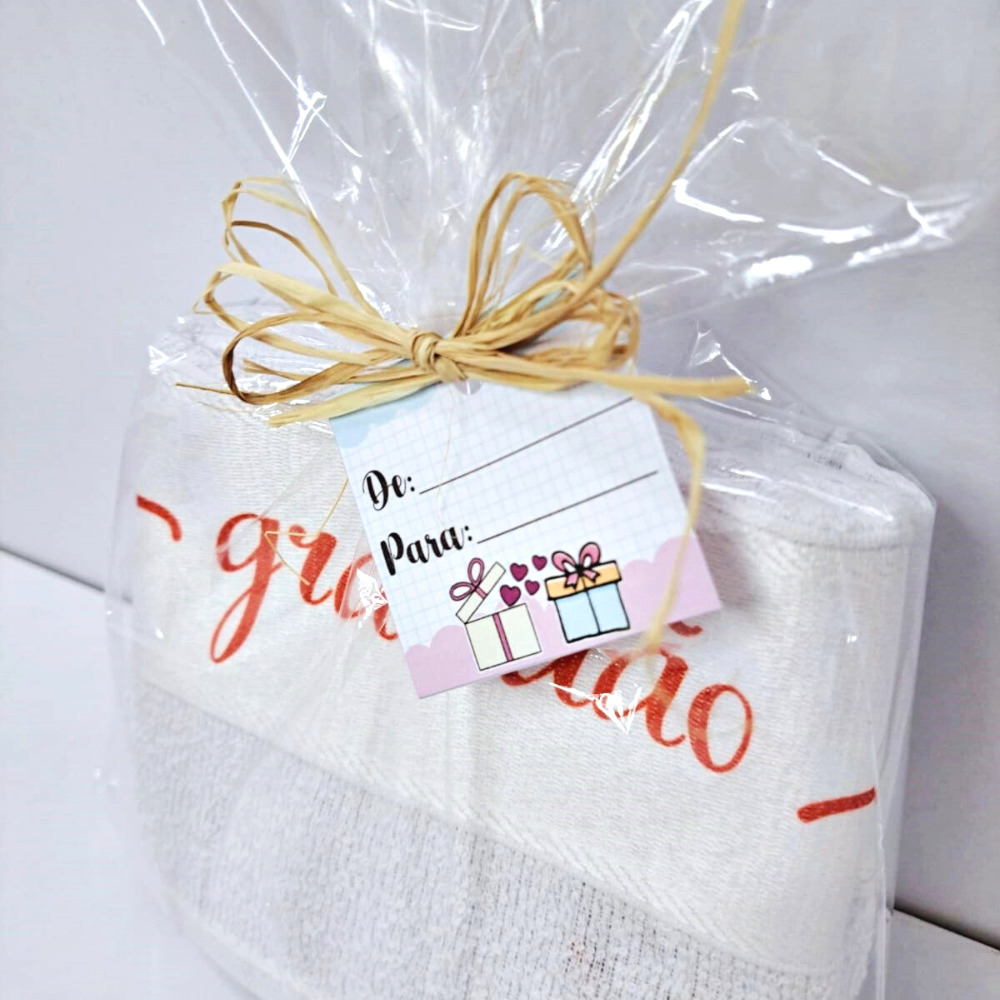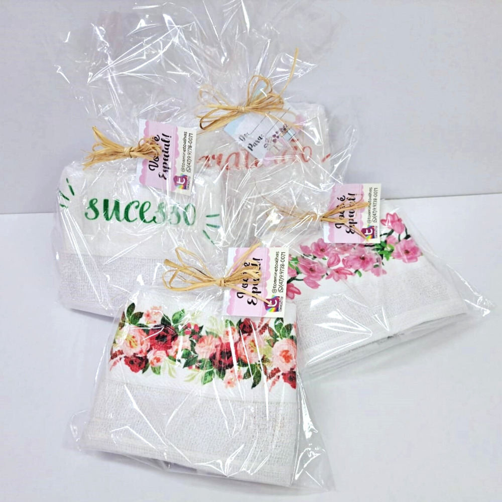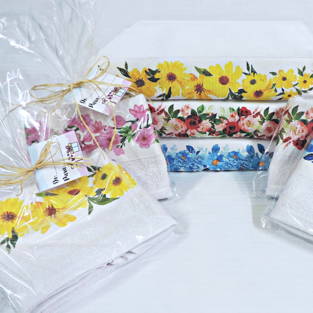 KIT PRESENTE COM 2 PEÇAS DE TOALHA LAVABO SUBLIMADA